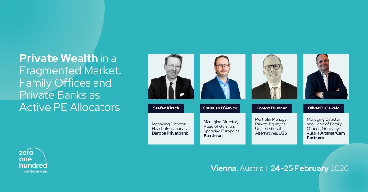 As structures like ELTIFs continue to open private equity to a wider group of investors, private banks and family offices are rethinking how they design products, manage risk, and educate clients. So, this panel is one of our key conversations at 0100 DACH 2026, addressing how family offices and private banks are taking on a more active role in private equity.