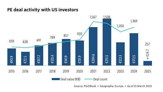Tariffs have slowed momentum and increased uncertainty, especially in industrially heavy regions such as DACH. However, European PE activity continues.