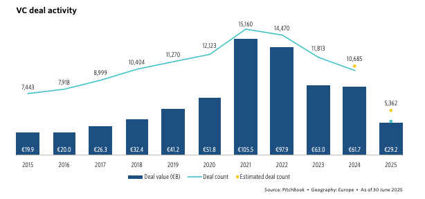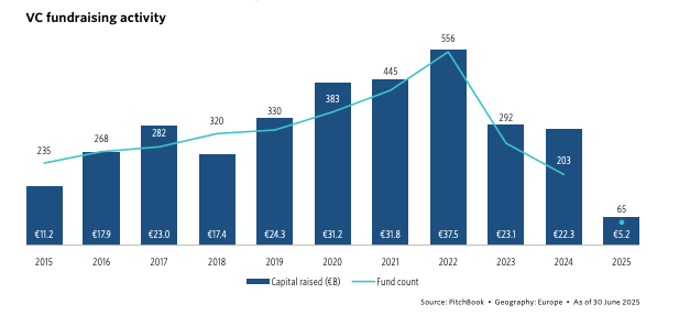 Venture fundraising in Europe is having a tough year. In the first half of 2025, just €5.2 billion was raised, putting it on track for the lowest annual total in nearly a decade.