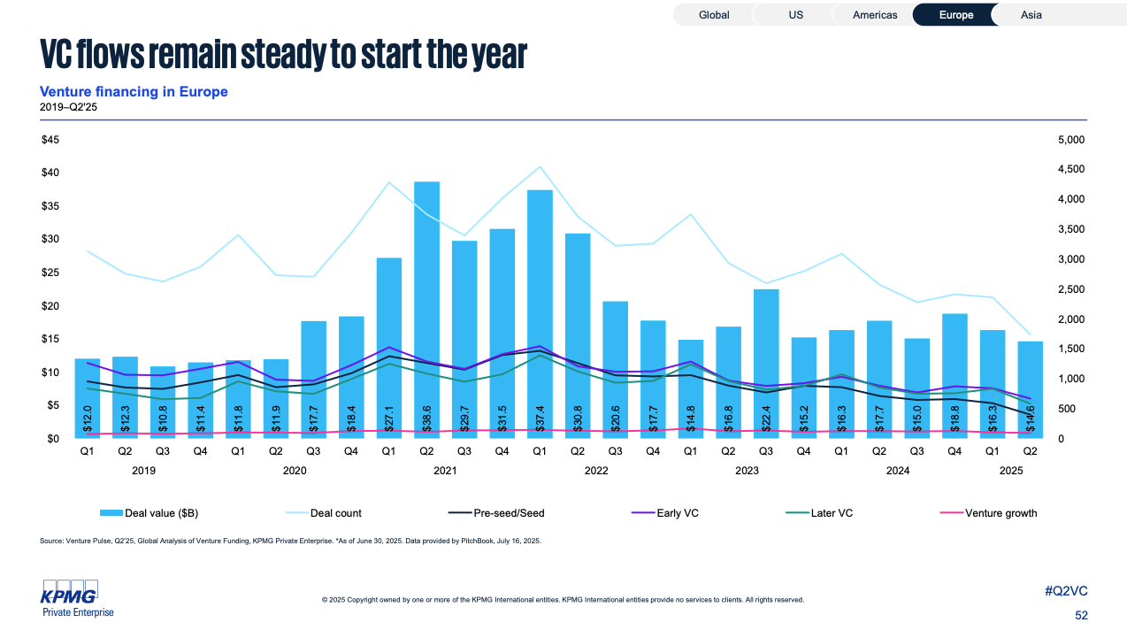 Venture capital activity in Europe got off to a strong start in early 2025, but momentum slowed in Q2 due to global macroeconomic uncertainty, market volatility, and reduced investor confidence.